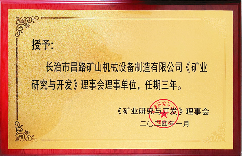 長沙礦山研究院授予我公司為《礦業與研究》理事會理事單位